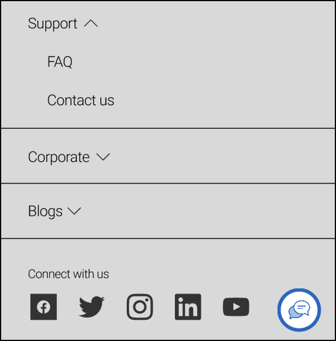 The accordion menu on mobile was kept minimal, and with the same information found within the footer on the desktop, to maintain continuity between devices.