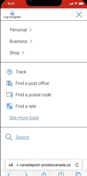 I optimized the home space of Canada Post's website by prioritizing the primary tools commonly used by shippers, based on extensive research.