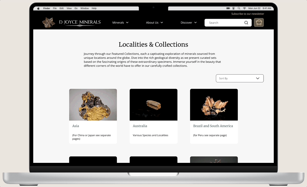Similar to the Latest Additions section, I had to reposition the "View All Localities & Collections" link. Users were unsure of what this card offered, with one assuming that the website only sold minerals from that locale. They didn't realize it was a featured location until they noticed the "view all" link below.