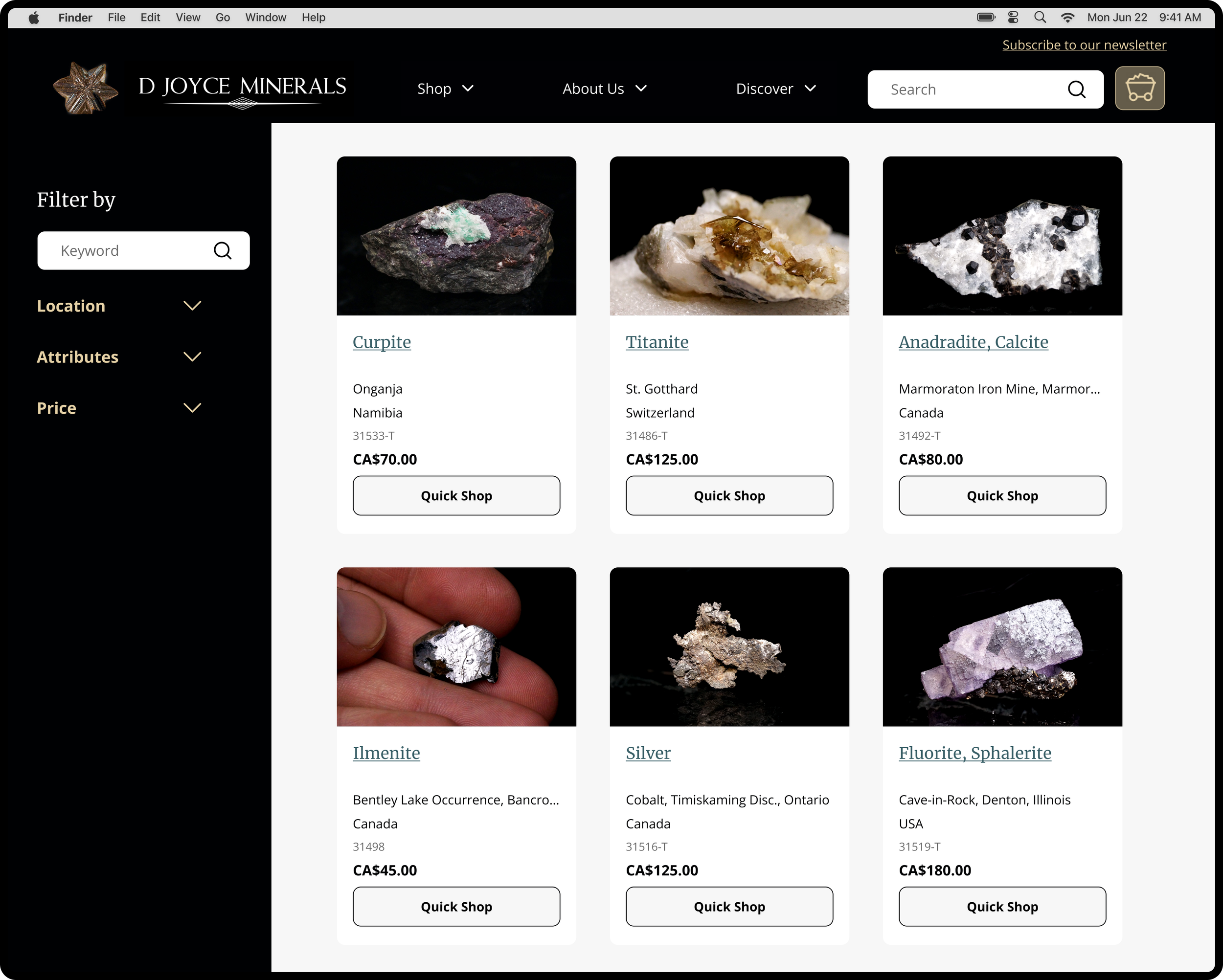D Joyce Minerals, a reputable online retailer for mineral collectors, needed a comprehensive website redesign to better serve both its loyal, experienced clientele and attract a new generation of novice buyers. The existing website, though functional, was outdated and did not effectively support either group.